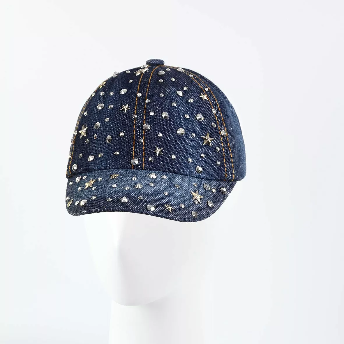 Передняя панель и козырек изделия "усыпаны" серебристыми стразами и