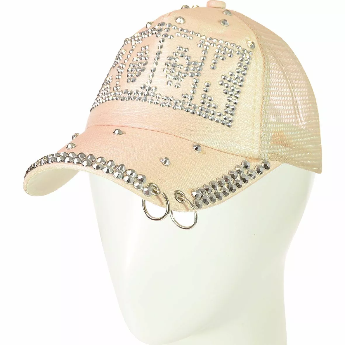 Летняя бейсболка, декорирована надписью "Rock" со страз, на