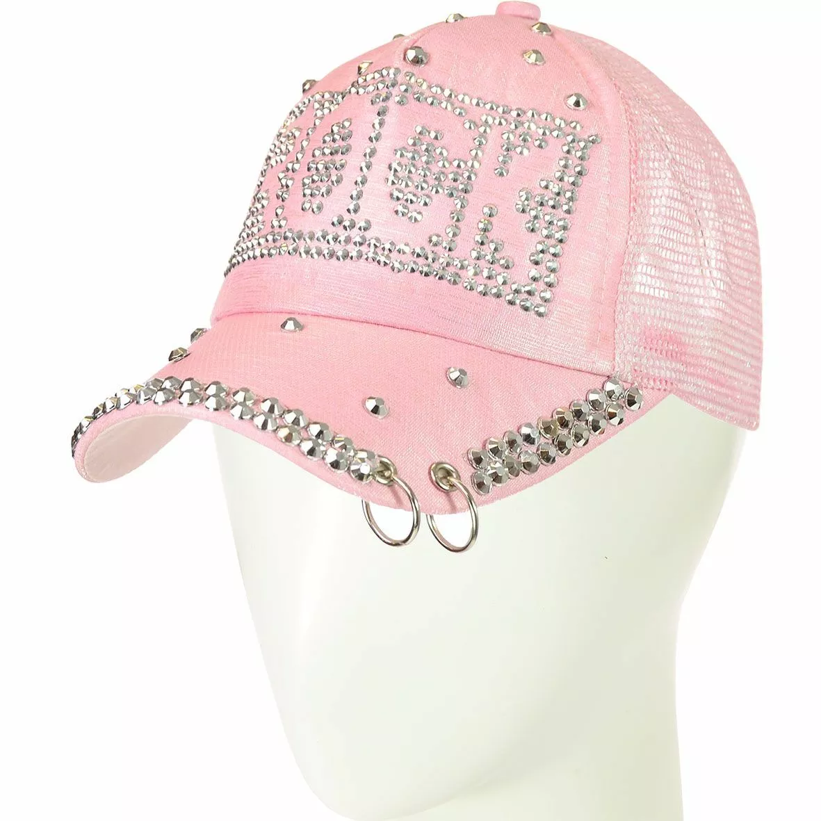 Летняя бейсболка, декорирована надписью "Rock" со страз, на