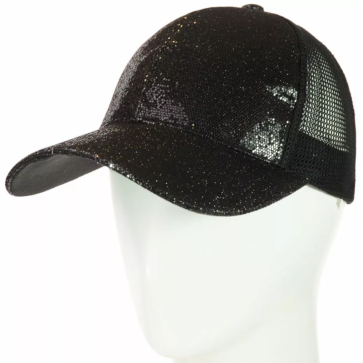 Женская бейсболка, декорирована пайеткам, на передней части изделия