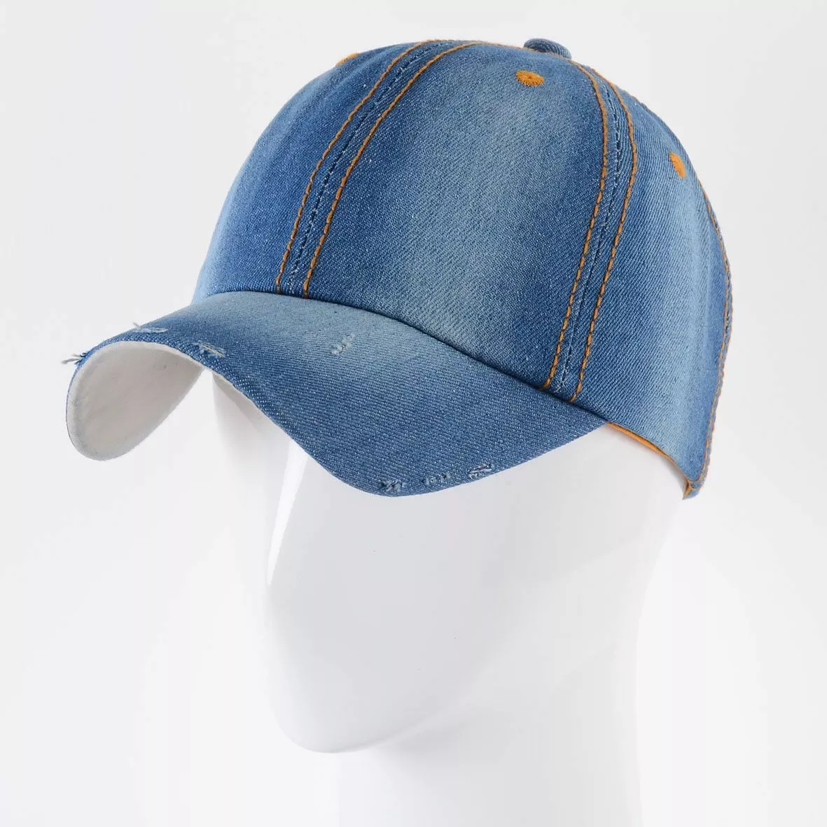 Джинсовая бейсболка с эффектом потертости с изогнутым козырьком без