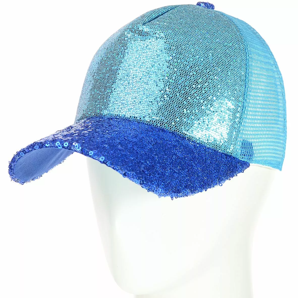 Яркая бейсболка, декорирована пайетками, на передней части изделия