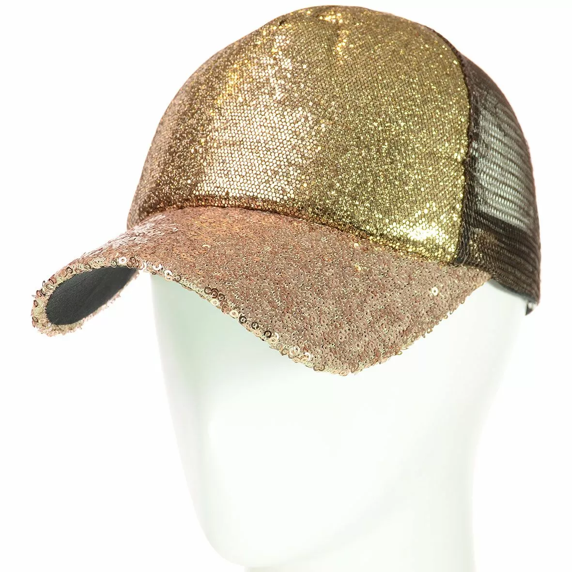 Яркая бейсболка, декорирована пайетками, на передней части изделия