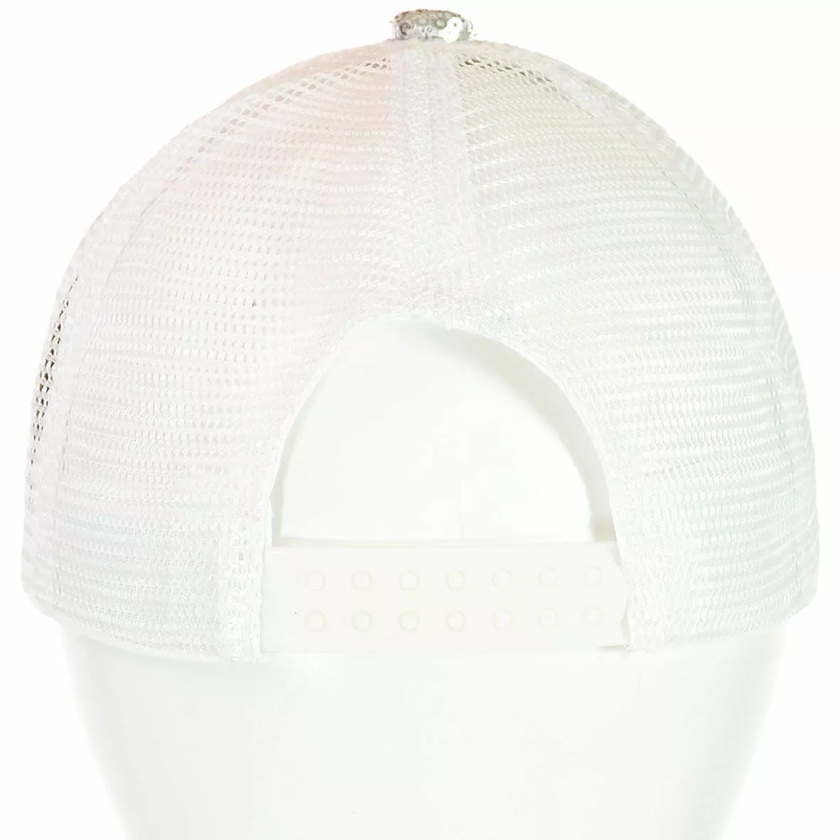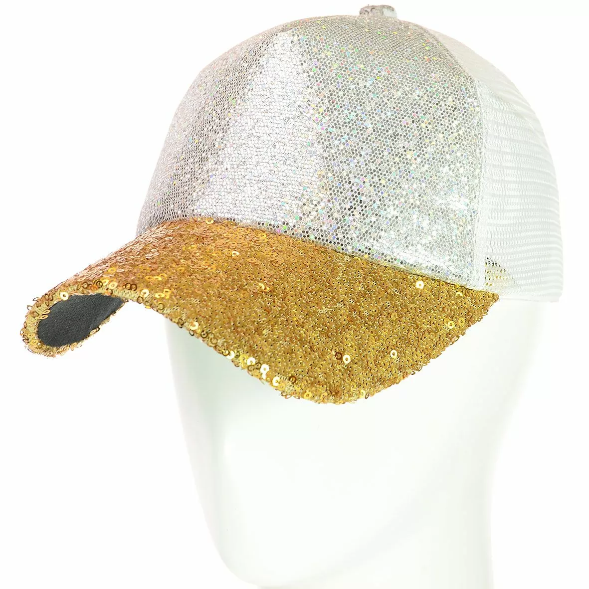 Яркая бейсболка, декорирована пайетками, на передней части изделия