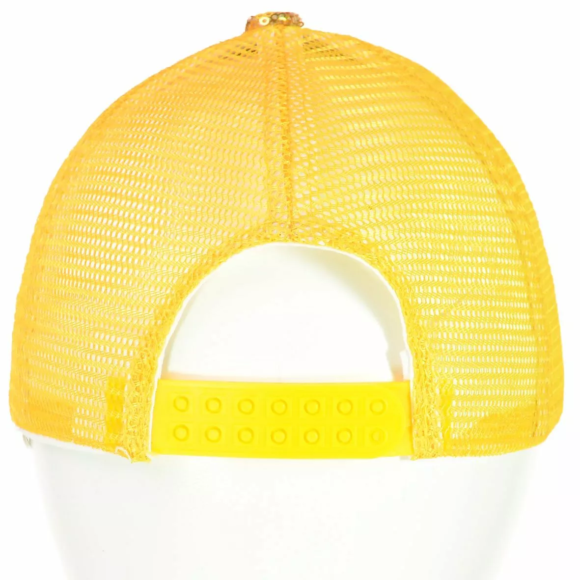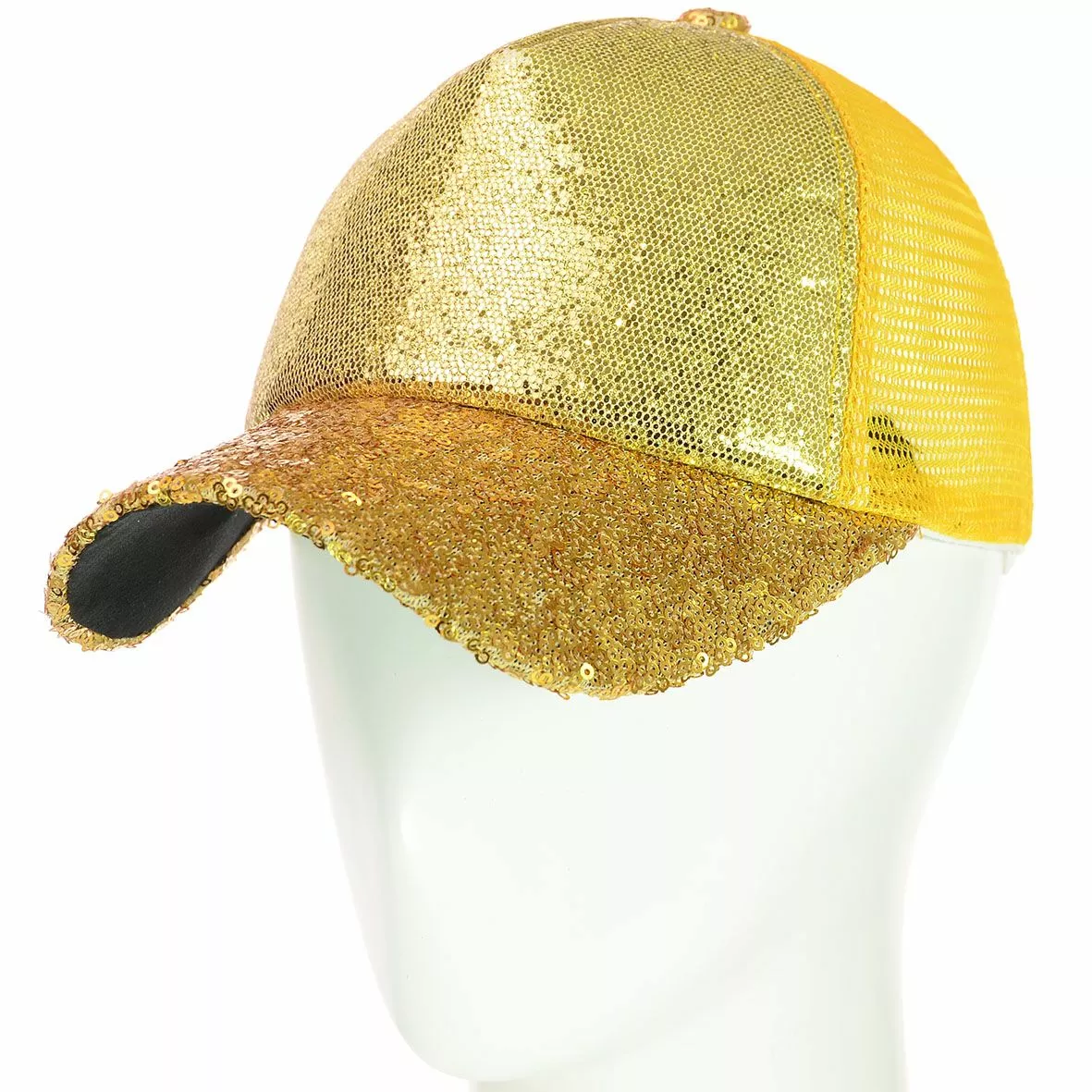 Яркая бейсболка, декорирована пайетками, на передней части изделия