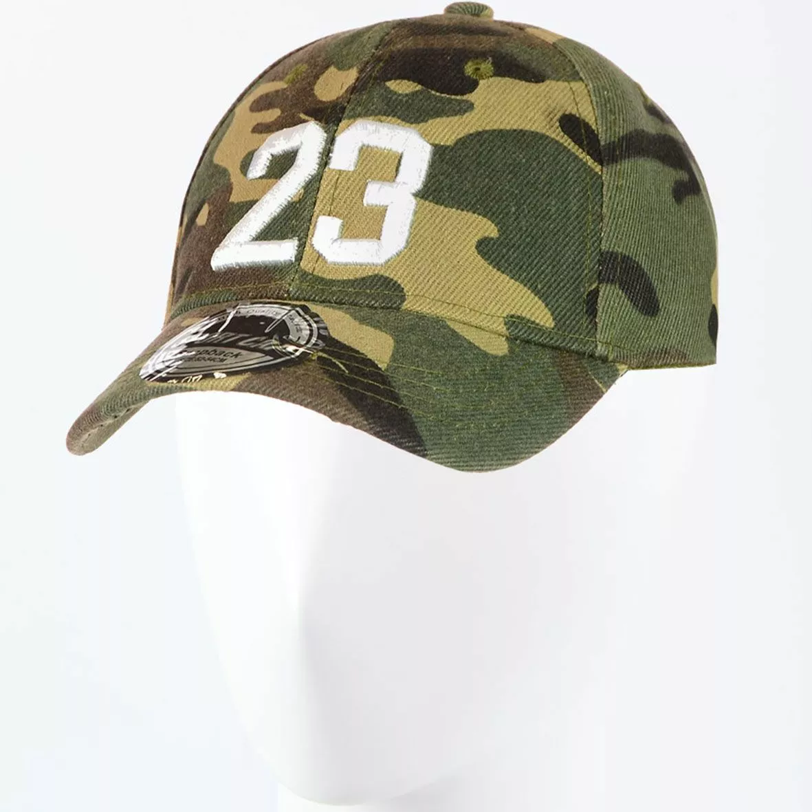 изогнутый козырек, декорирована вышитыми цифрами "23". Размер