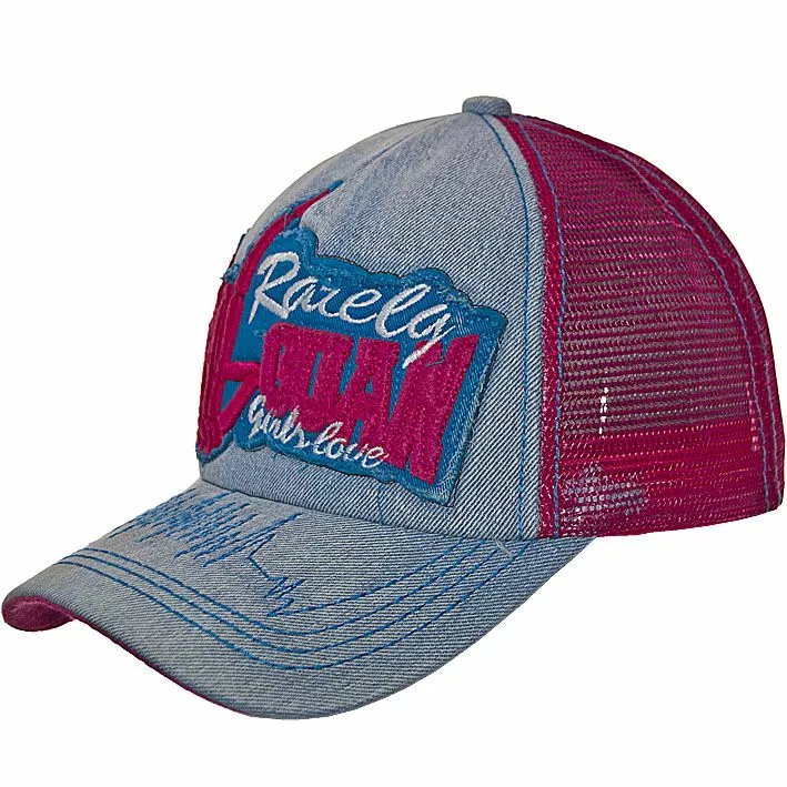 Стильная кепка из джинсы с яркой нашивкой спереди