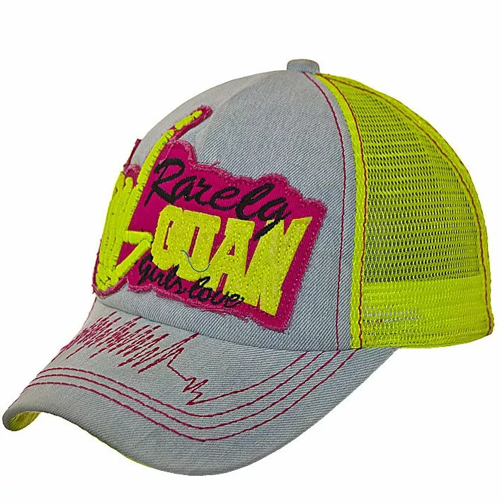 Стильная кепка из джинсы с яркой нашивкой спереди