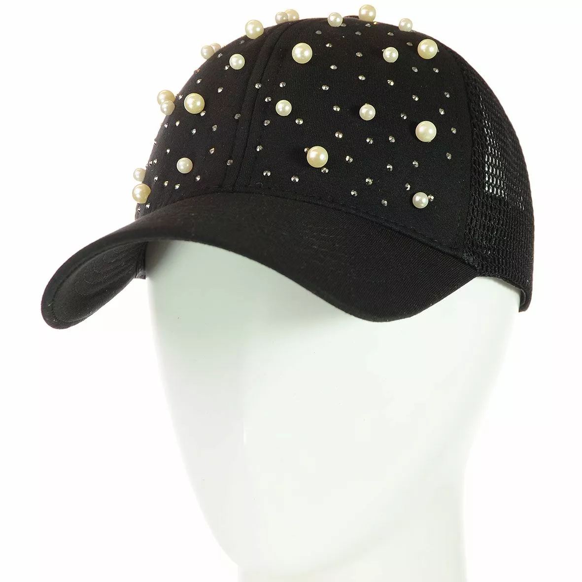 часть кепки "усыпана" блестящими стразами и бусами, а задняя часть