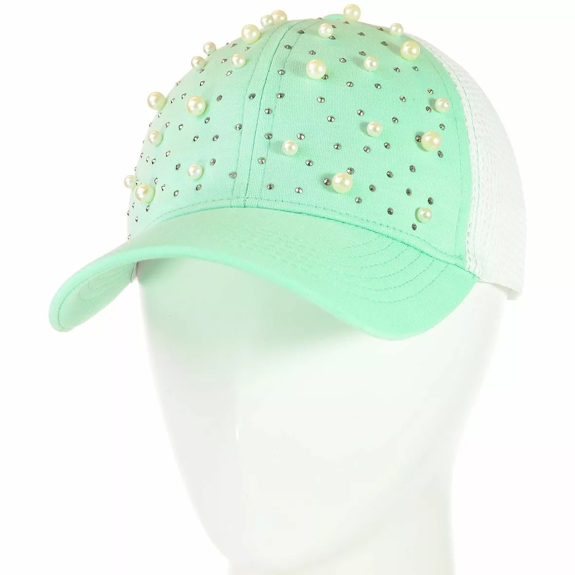 часть кепки "усыпана" блестящими стразами и бусами, а задняя часть