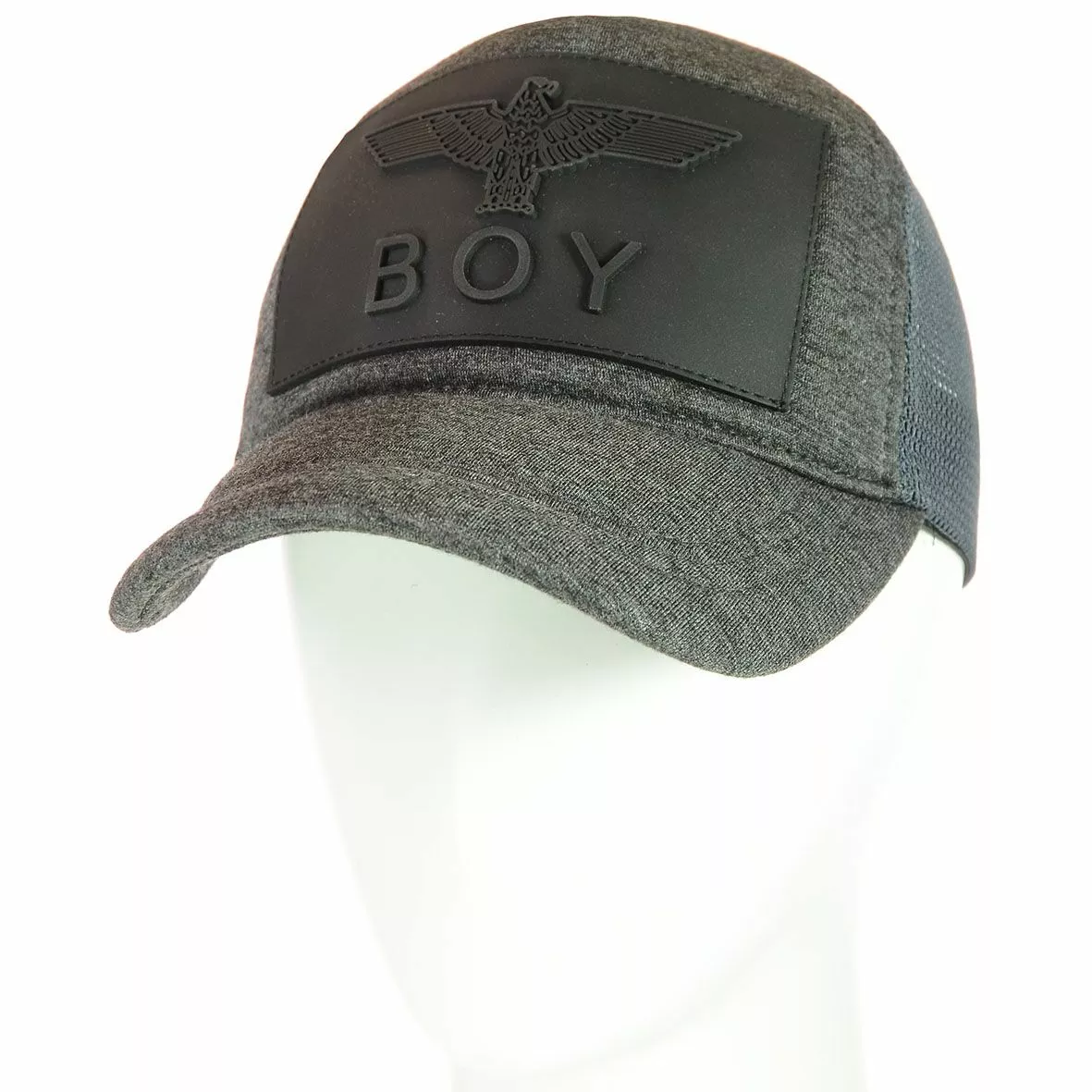 Передняя панель головного убора украшена резиновой накладкой "BOY",
