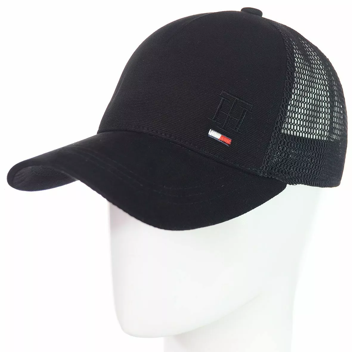 Демисезонная кепка из плотной ткани и сетки. Имеется