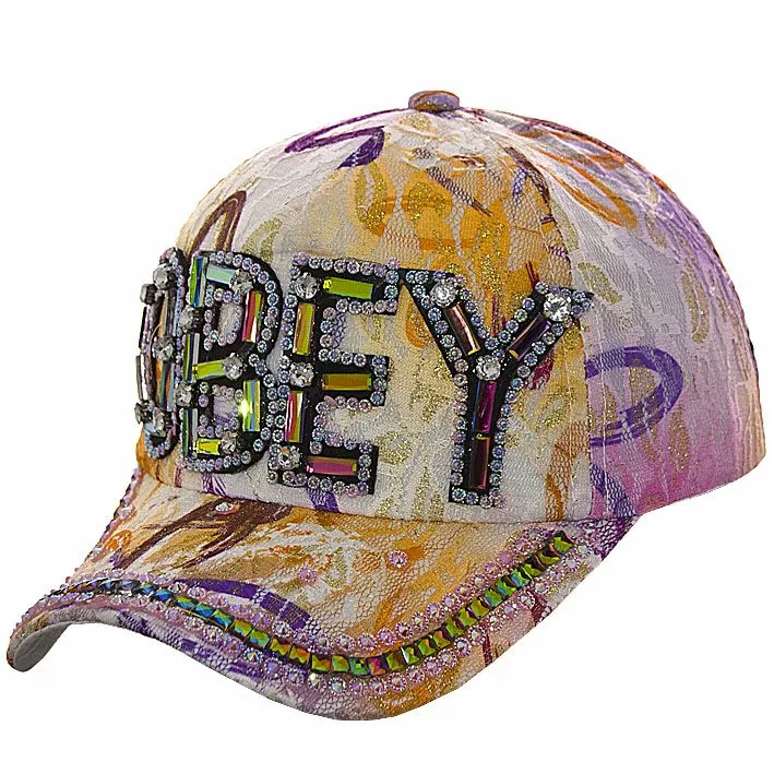 Кепка декорирована камнями и стразами, все это придаёт блестящий