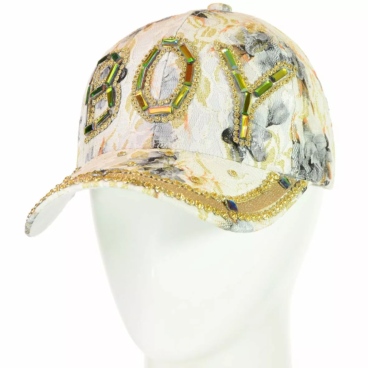 Кепка декорирована надписью с камней и страз "BOY", все это придаёт