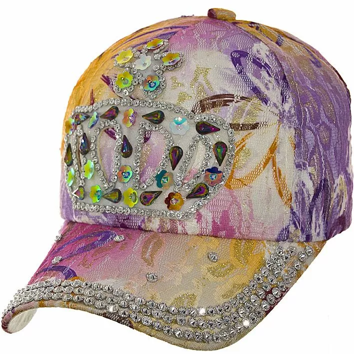 Кепка декорирована камнями и стразами, все это придаёт блестящий