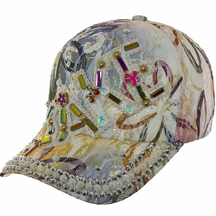 Кепка декорирована камнями и стразами, все это придаёт блестящий