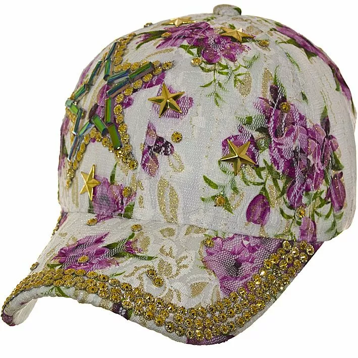 Кепка декорирована камнями и стразами, все это придаёт блестящий