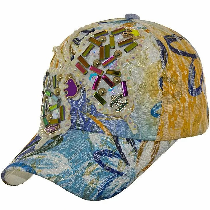Кепка декорирована камнями и стразами, все это придаёт блестящий