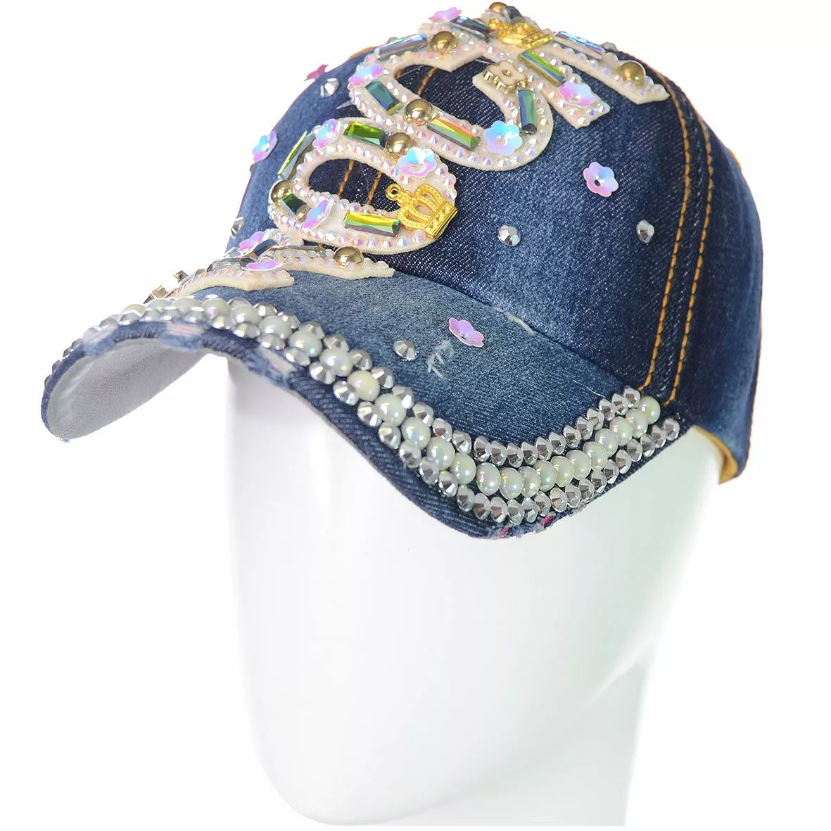 Кепка декорирована камнями и стразами, все это придаёт блестящий
