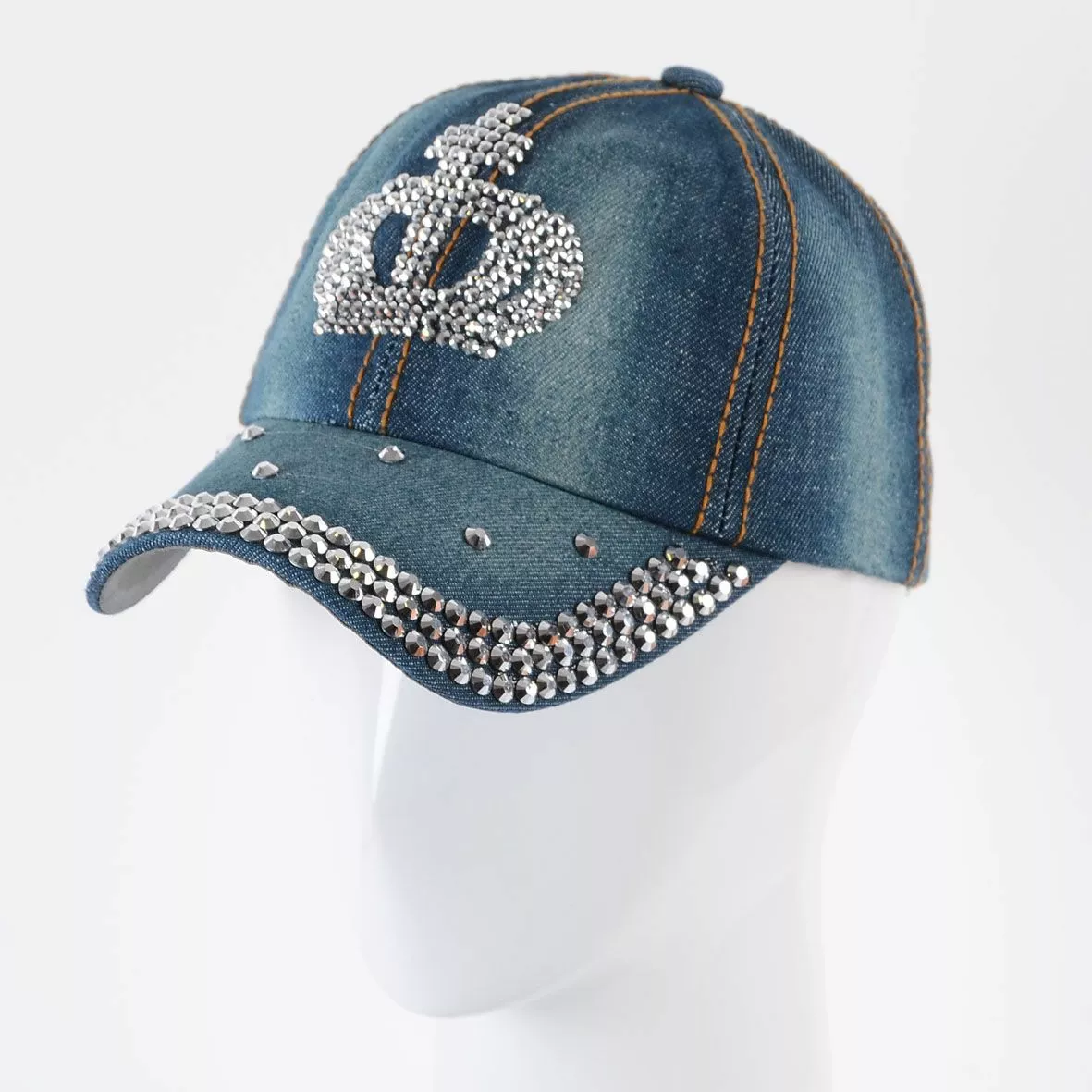 Джинсовая кепка с крупными стразами на козырьке и мелкими стразами