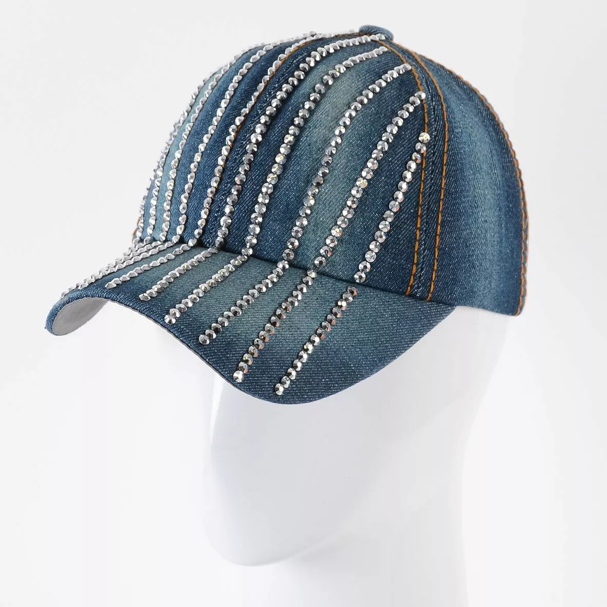 Джинсовая кепка с крупными стразами на козырьке и мелкими стразами