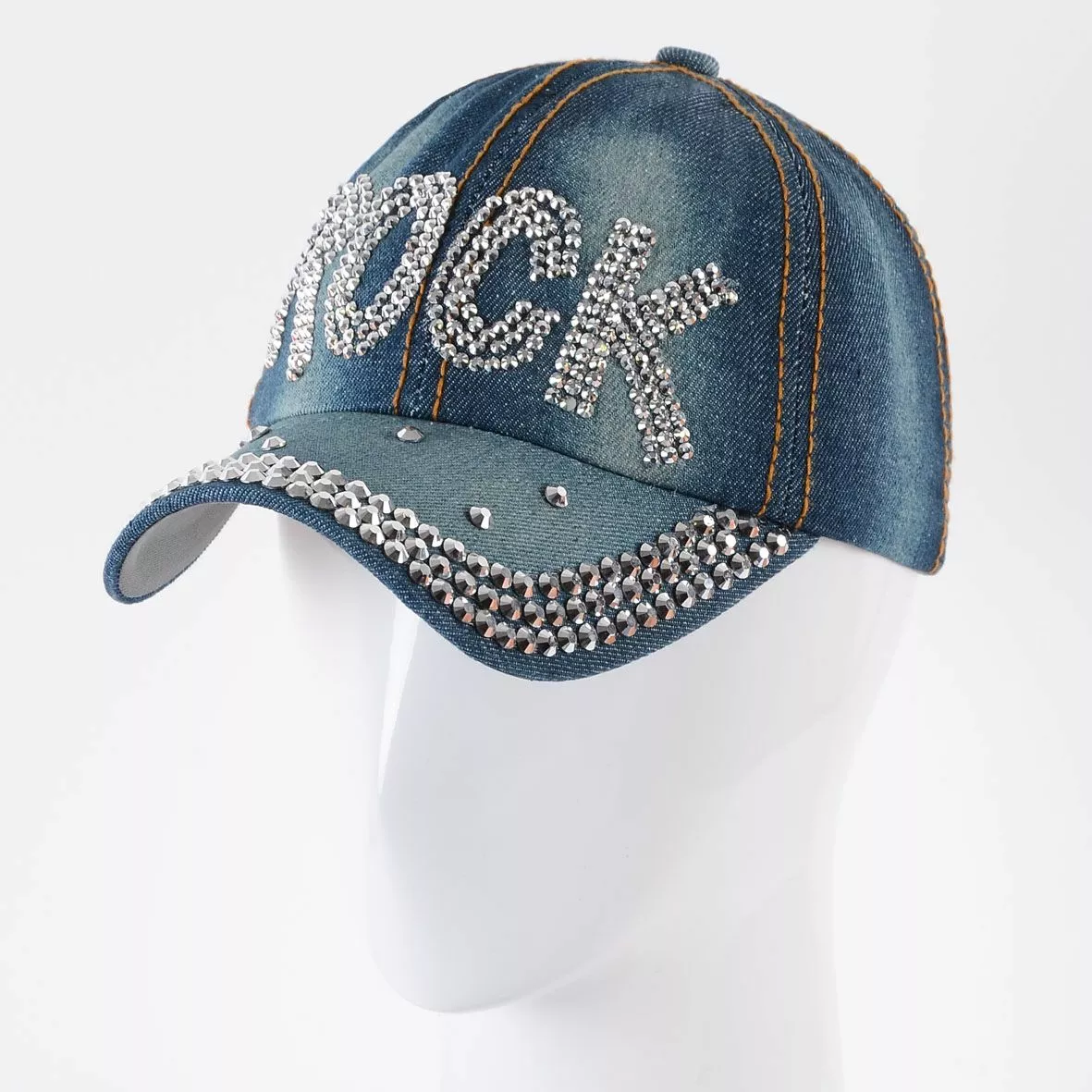 Джинсовая кепка с крупными стразами на козырьке и мелкими стразами