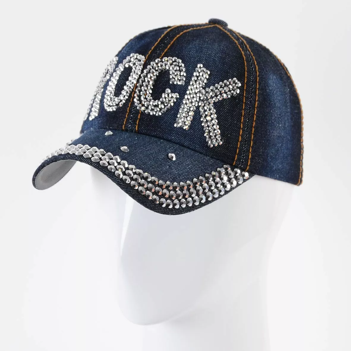 Джинсовая кепка с крупными стразами на козырьке и мелкими стразами