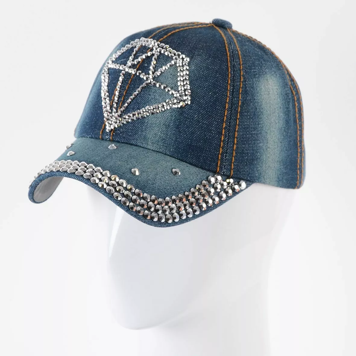 Джинсовая кепка с крупными стразами на козырьке и мелкими стразами