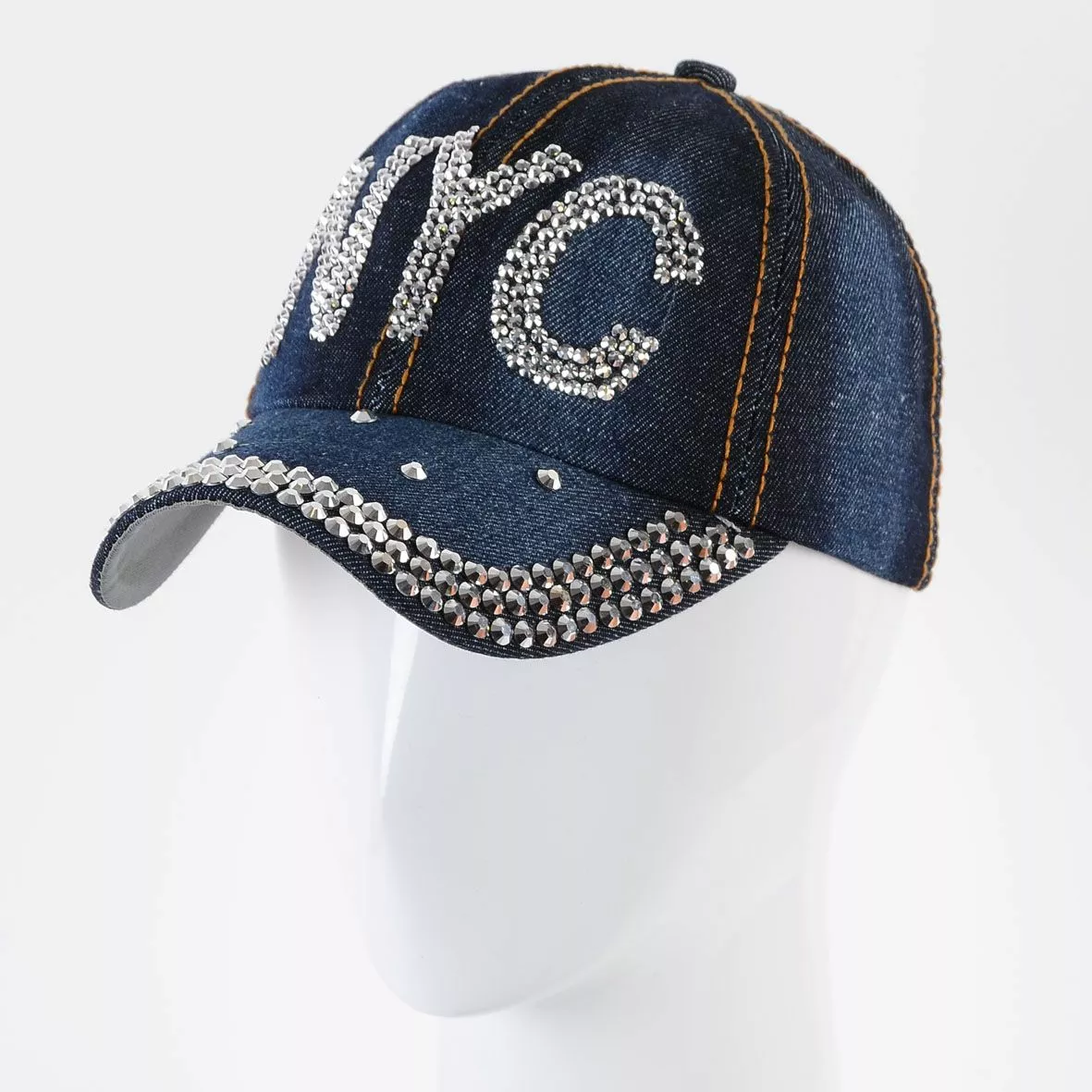 Джинсовая кепка с крупными стразами на козырьке и мелкими стразами