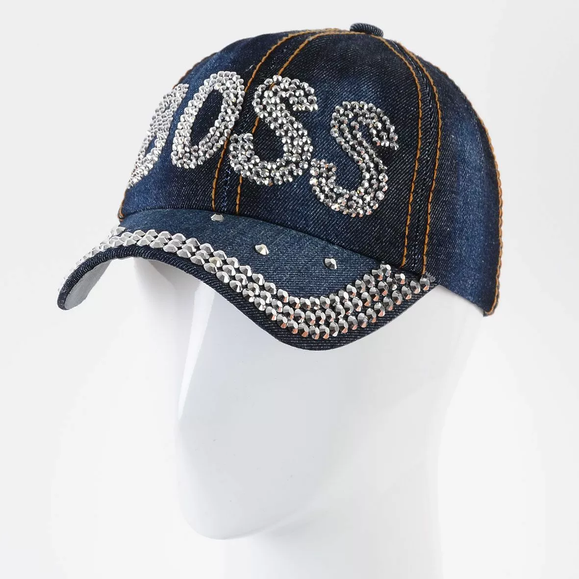Джинсовая кепка с крупными стразами на козырьке и мелкими стразами