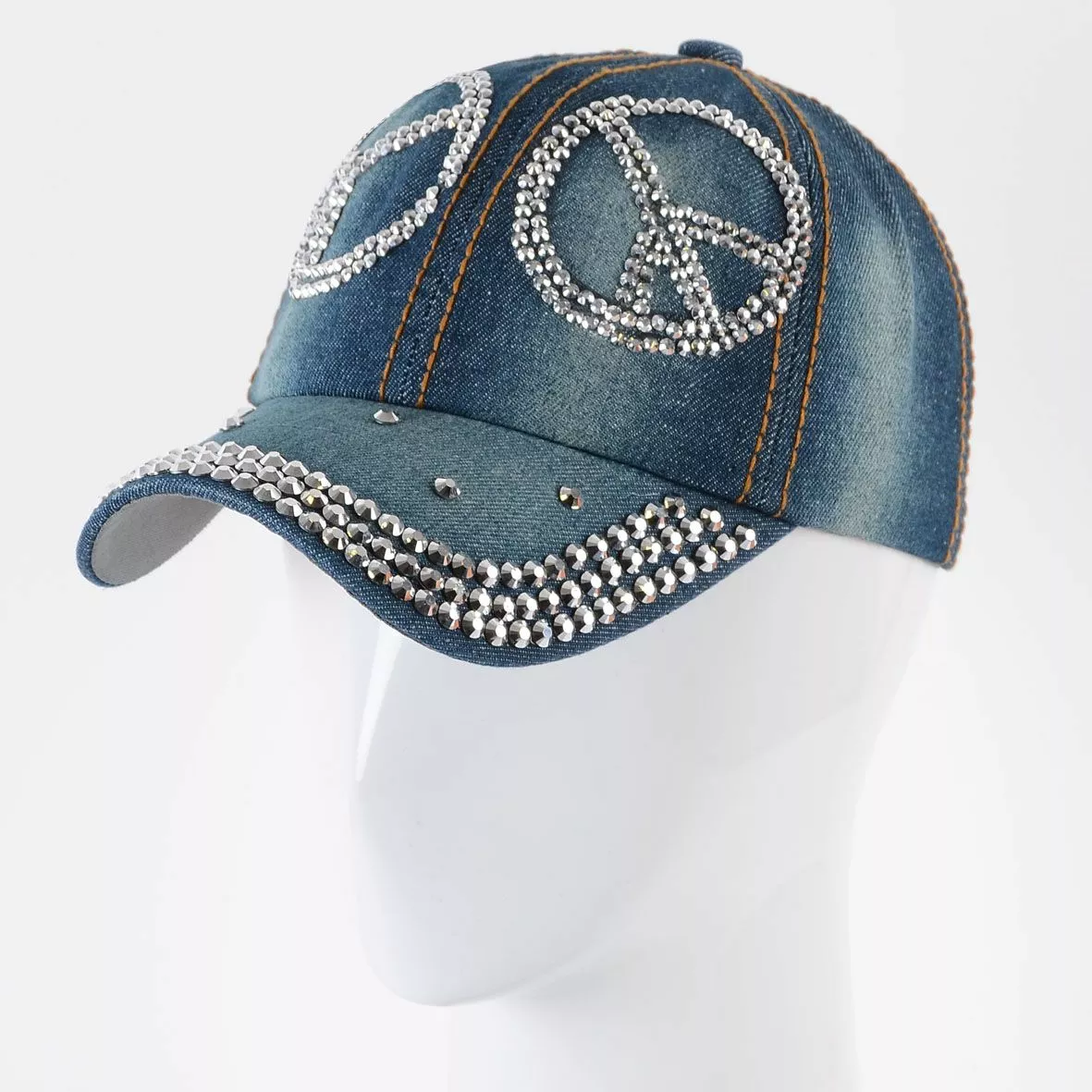Джинсовая кепка с крупными стразами на козырьке и мелкими стразами