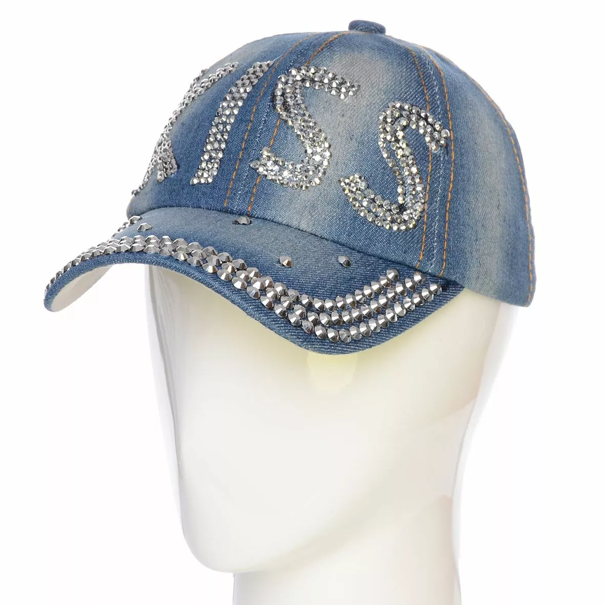 Джинсовая кепка с крупными стразами на козырьке и мелкими стразами
