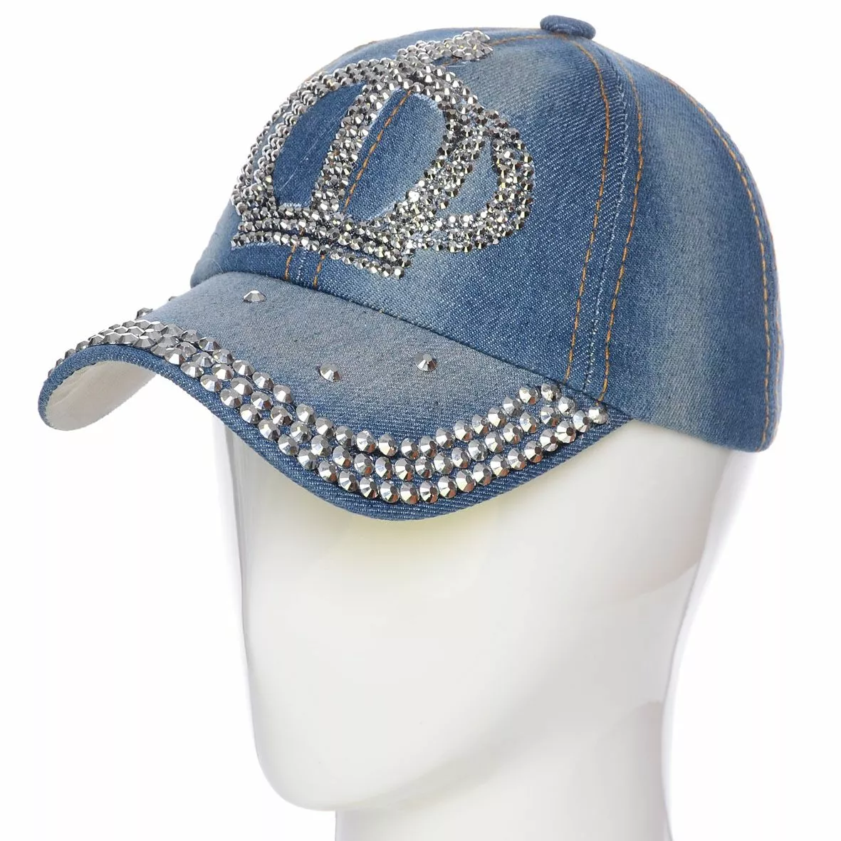 Стильная джинсовая кепка с крупными и мелкими стразами на козырьке