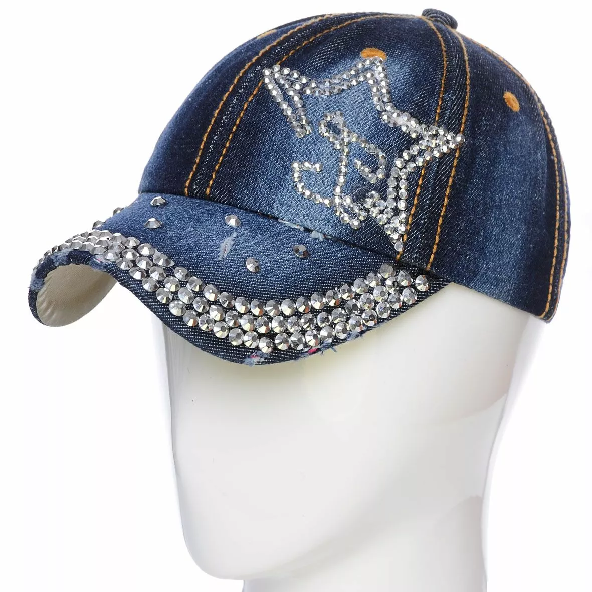 Джинсовая кепка с крупными стразами на козырьке и звёздой на