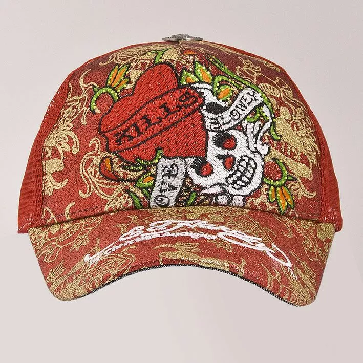 черепа и сердца, украшена стразами. Задняя часть головного убора