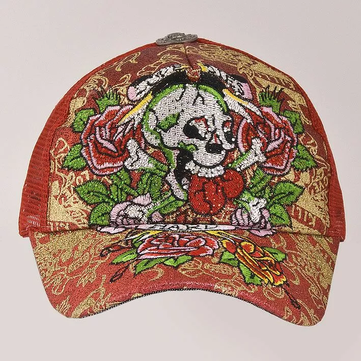 в виде черепа и роз, украшена стразами. Задняя часть головного