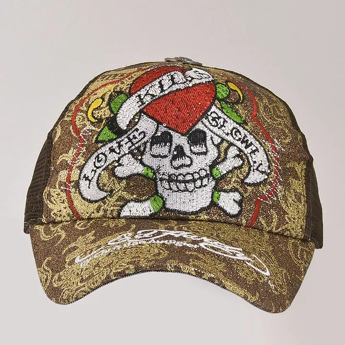 в виде черепа и сердца, украшена стразами. Задняя часть головного