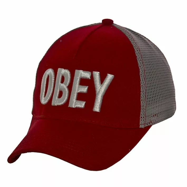 расположена вышивка «Obey», сзади головной убор имеет