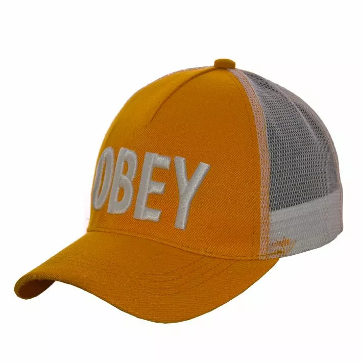 расположена вышивка «Obey», сзади головной убор имеет