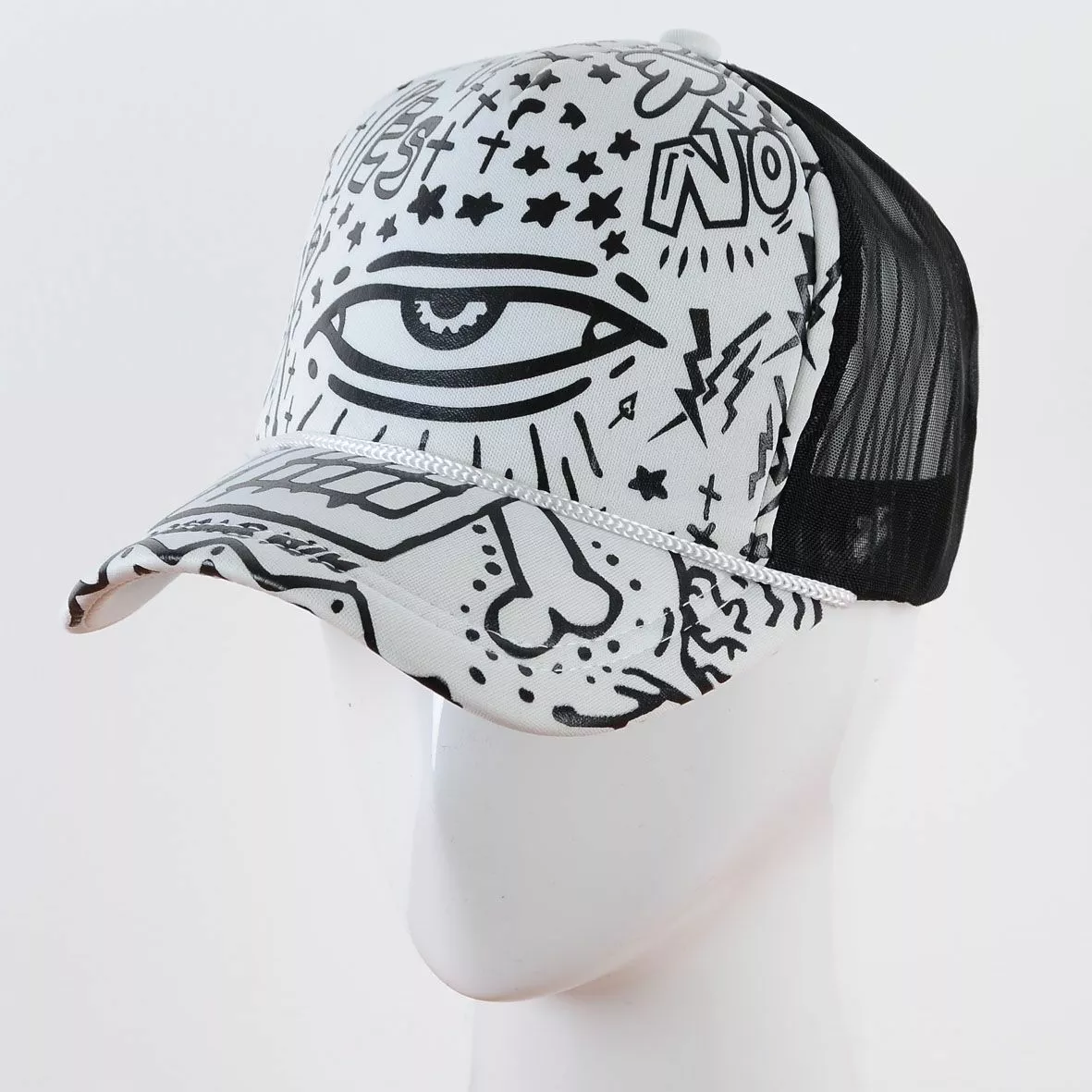 Cпортивная бейсболка тракерка черного цвета с нанесенным рисунком