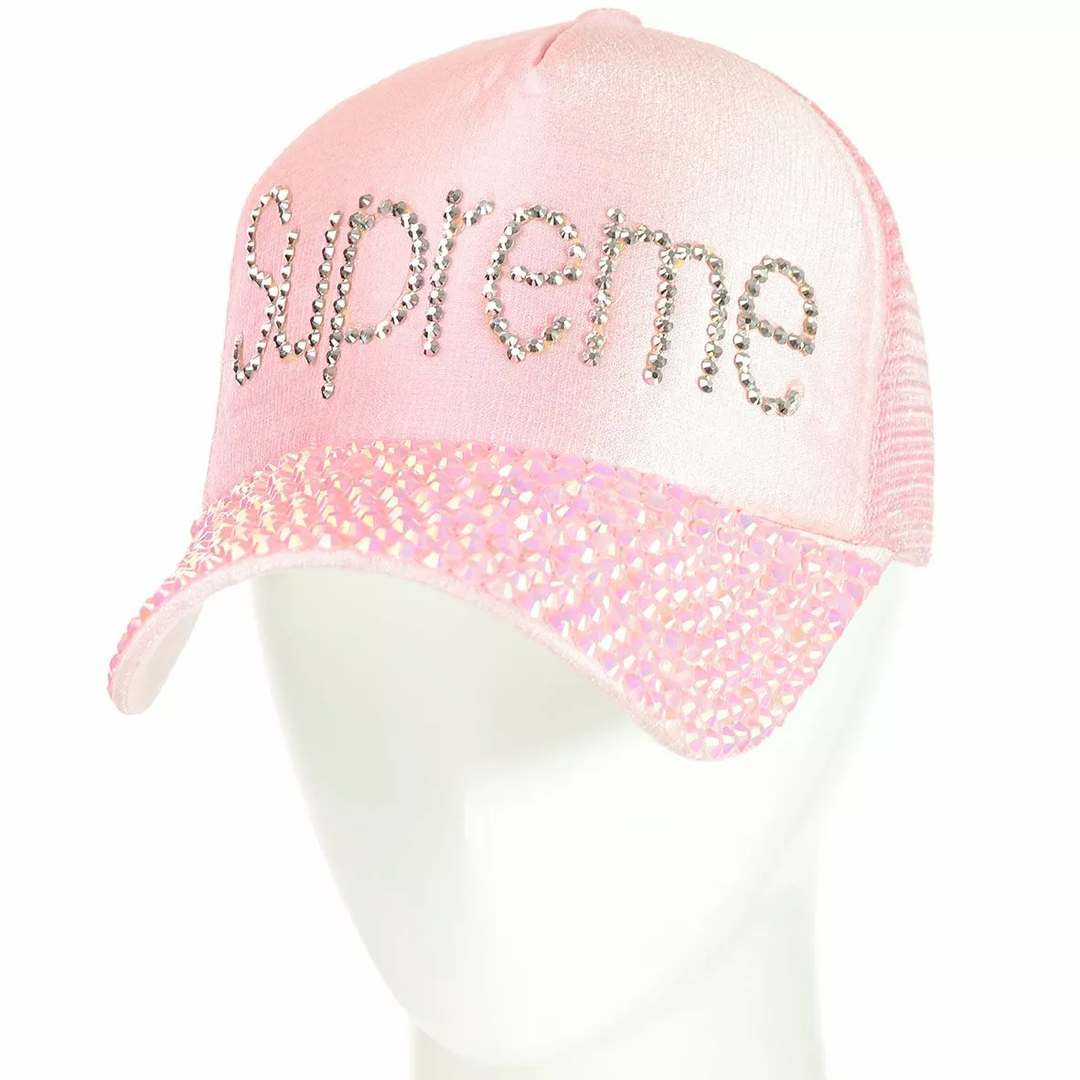 козырек весь "усыпан" стразами. Размер кепки можно отрегулировать с