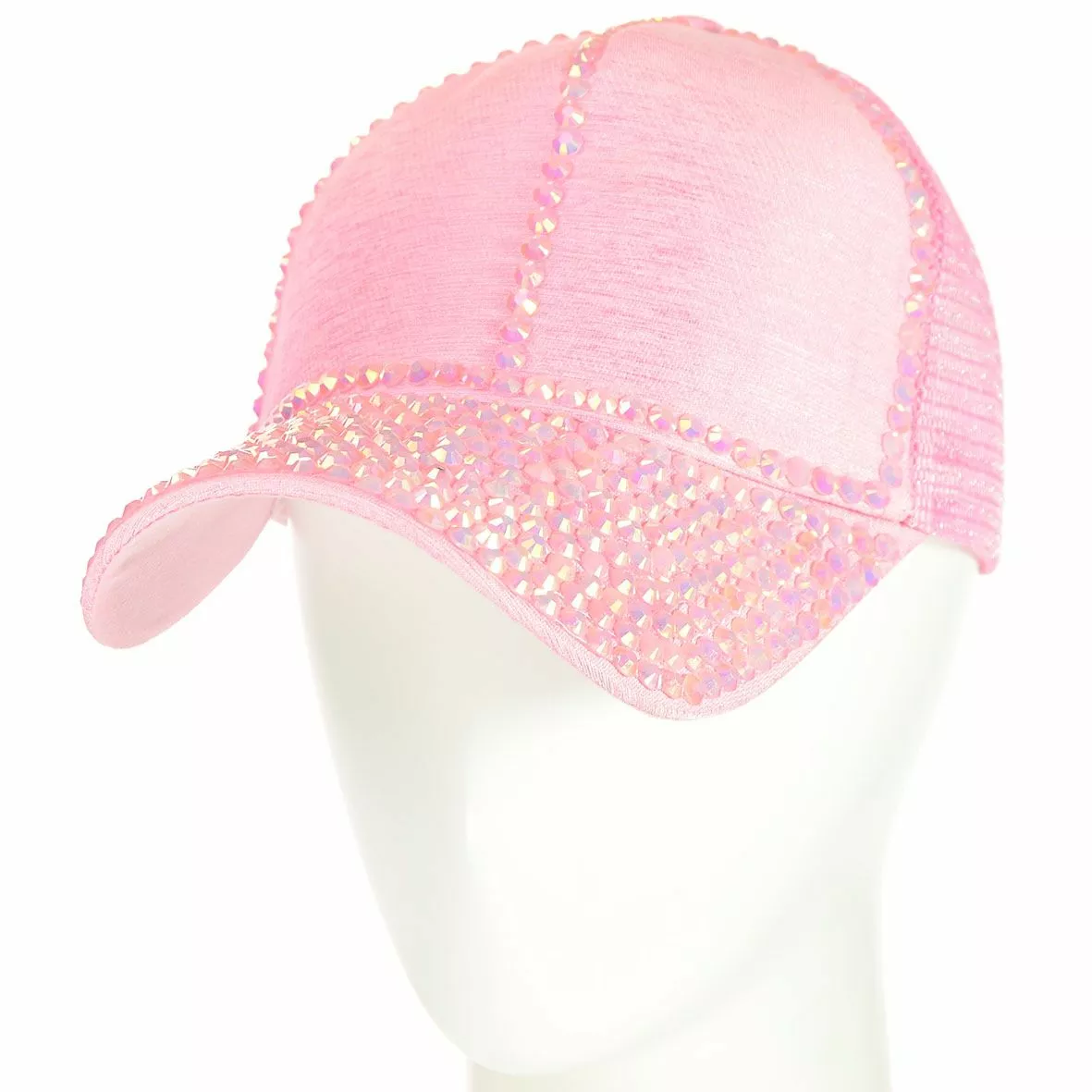 Яркая бейсболка, декорирована блестящими стразами, на передней
