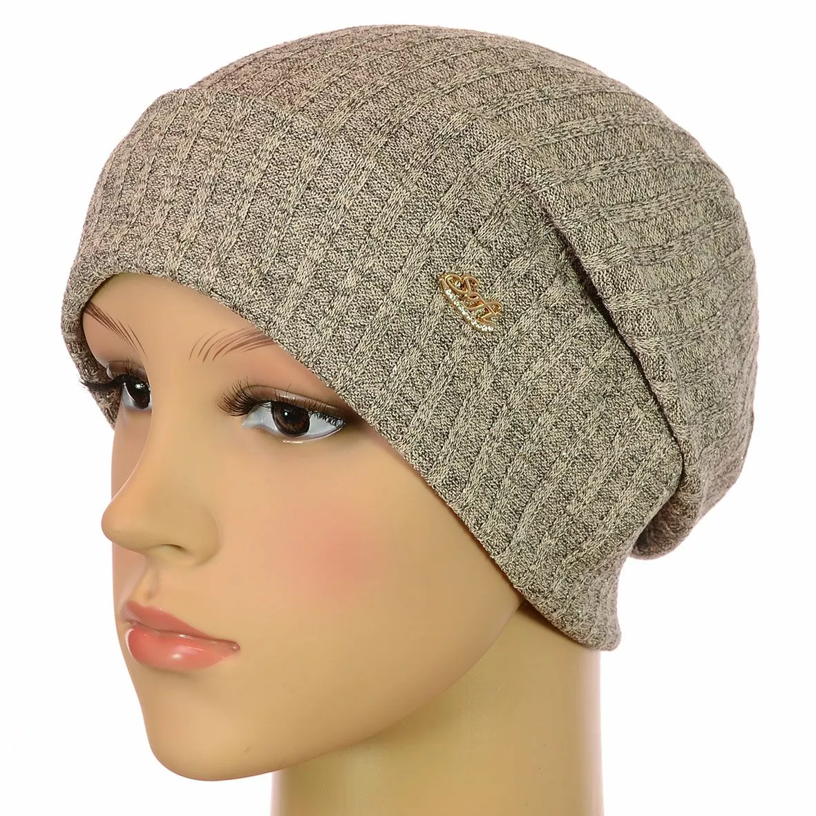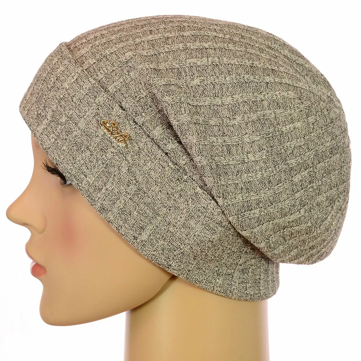 Двухслойная трикотажная шапка с отворотом и закрепом сзади,