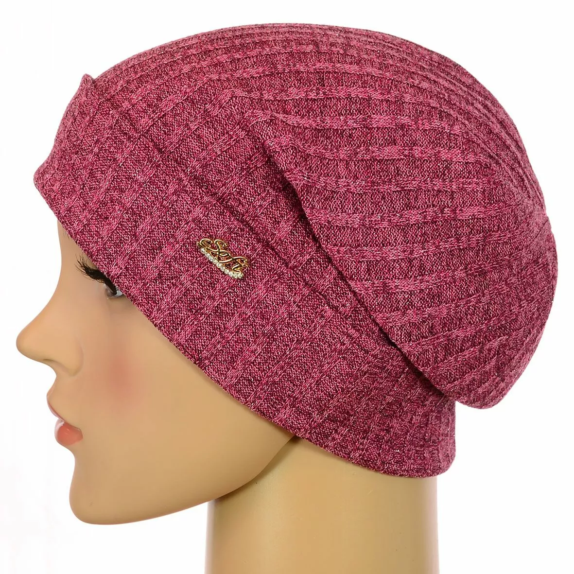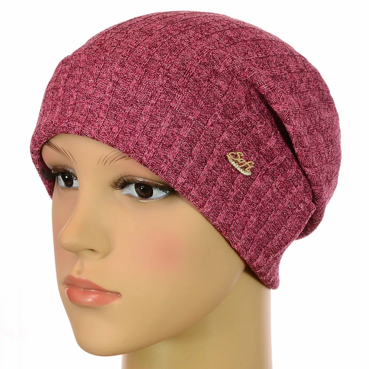 Двухслойная трикотажная шапка с отворотом и закрепом сзади,