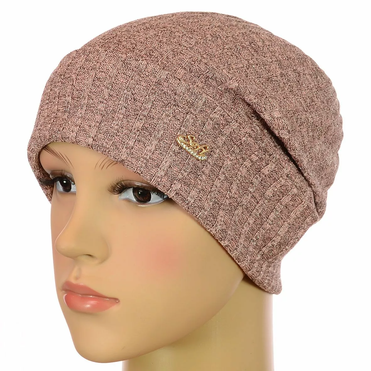 Двухслойная трикотажная шапка с отворотом и закрепом сзади,
