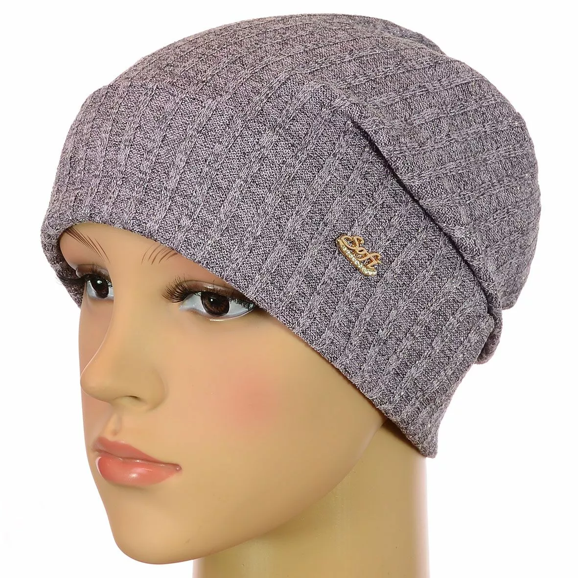 Двухслойная трикотажная шапка с отворотом и закрепом сзади,