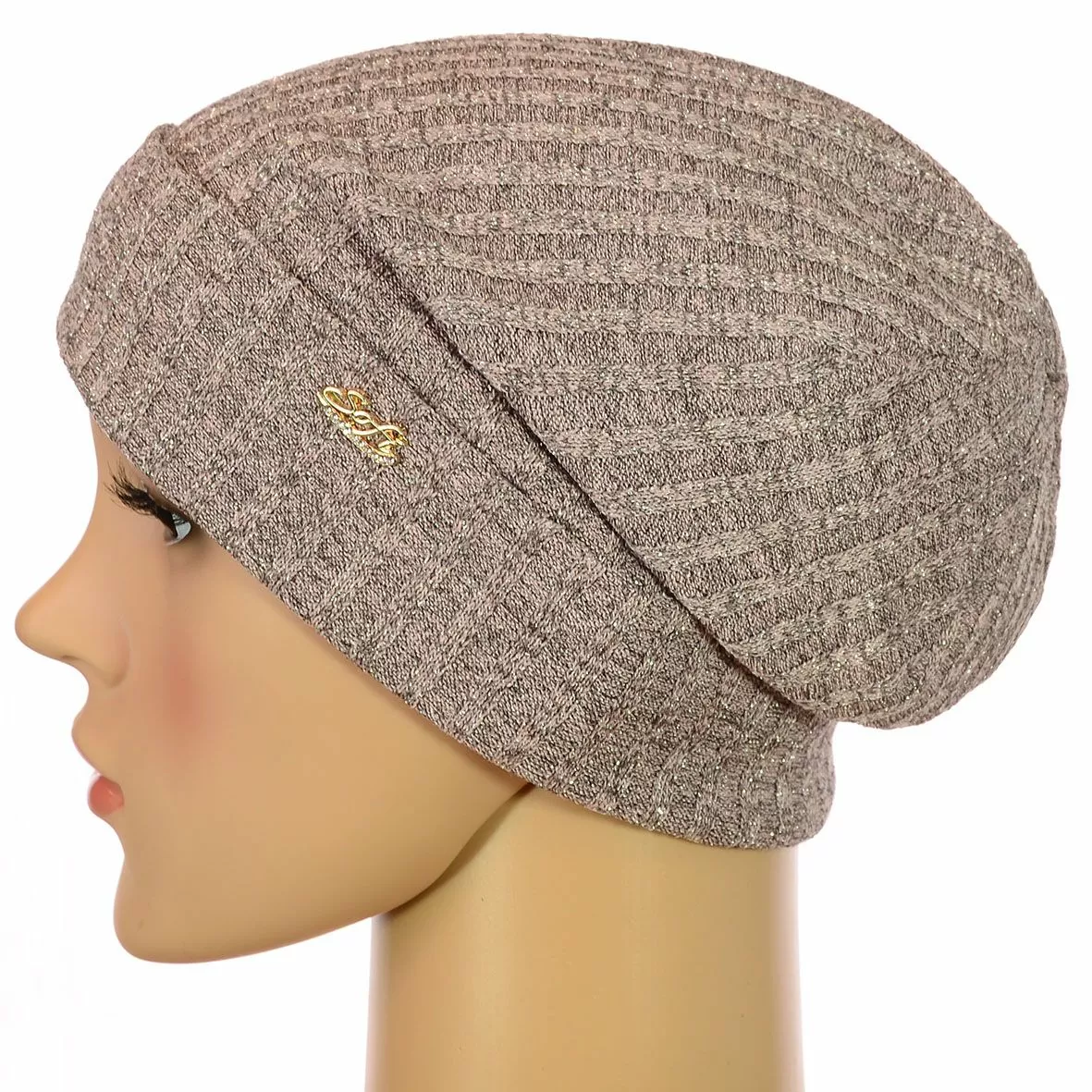 Двухслойная трикотажная шапка с отворотом и закрепом сзади,