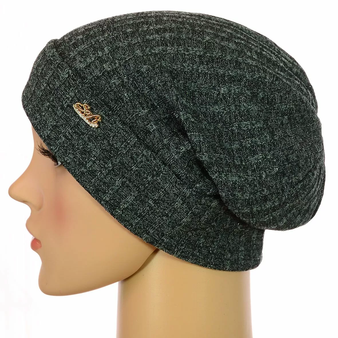 Двухслойная трикотажная шапка с отворотом и закрепом сзади,