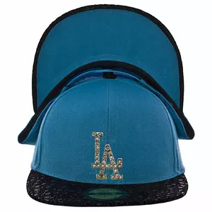 передней части бейсболки, расположены буквы LA (Los Angeles),