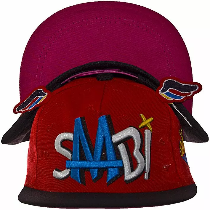Оригинальная кепка красного цвета с прямым чёрным козырьком и